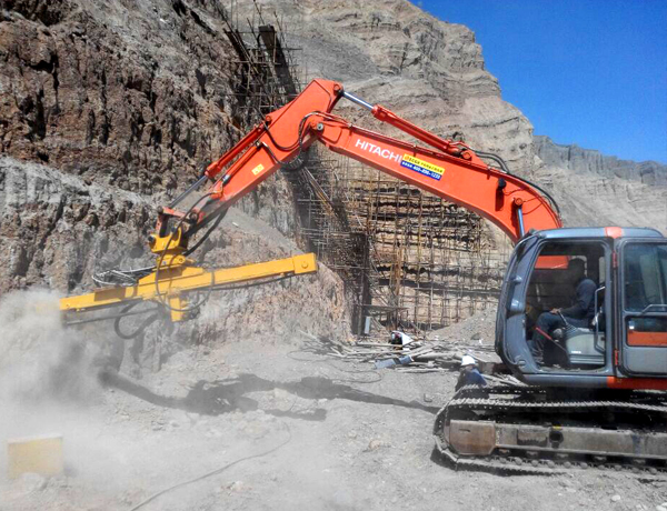 3、作業(yè)半徑擴大化 。因為挖掘機小臂不拆,它的作業(yè)半徑可以延長作業(yè)半徑2-3米,且仰角打孔、水平打孔、豎直打孔都可以實現(xiàn)。