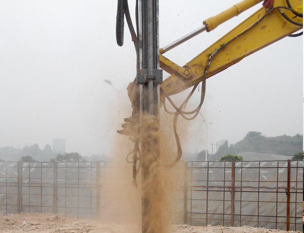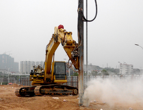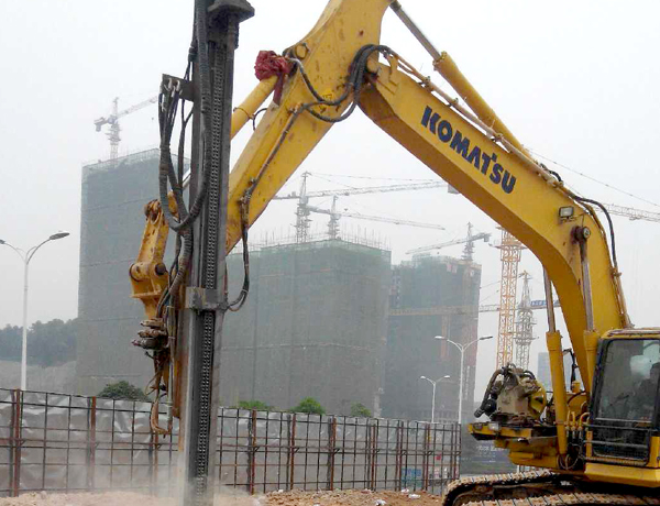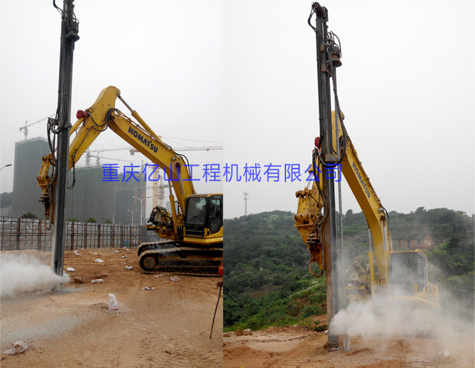 2、前后左右自由伸展,當挖掘機在工地不平坦的情況下, 挖機手可根據(jù)位置不同調(diào)整鉆桿角度,保持90°垂直鉆孔。
