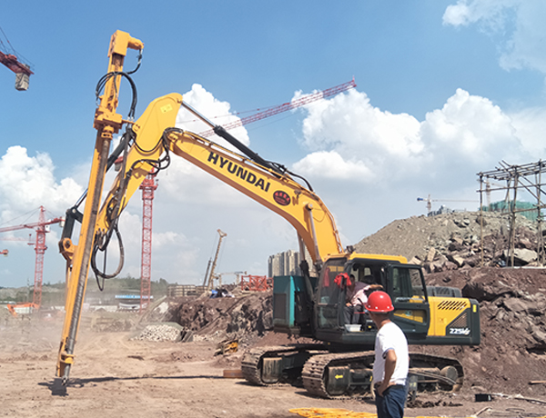 2、前后左右自由伸展,當挖掘機在工地不平坦的情況下, 挖機手可根據(jù)位置不同調(diào)整鉆桿角度,保持90°垂直鉆孔。