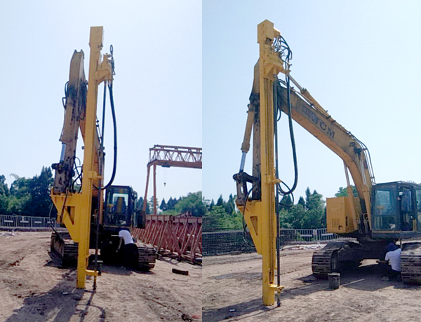 2、前后左右自由伸展,當(dāng)挖掘機(jī)在工地不平坦的情況下, 挖機(jī)手可根據(jù)位置不同調(diào)整鉆桿角度,保持90°垂直鉆孔。