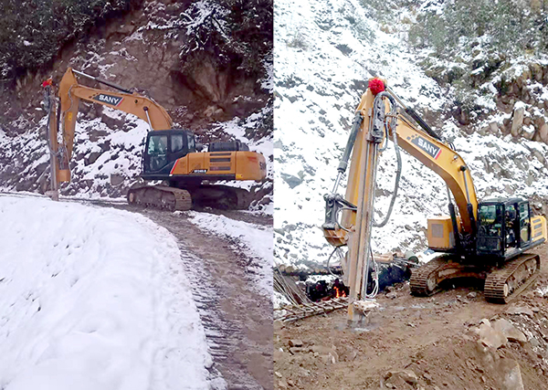 喜馬拉雅山和念青唐古拉山平行伸展,東與橫斷山脈對接。兩大洋的暖流常年交匯,順著世界最深峽谷——雅魯藏布江大峽谷魚貫而入,造就年降雨量650毫米的奇觀。這里的山道高聳入云,“九曲十八彎”。車子上不去,下來的,往往是暴雨夾著滾石。多年來,這里地質(zhì)災(zāi)害頻發(fā),一直被視為工程機(jī)械的“服務(wù)禁區(qū)”。