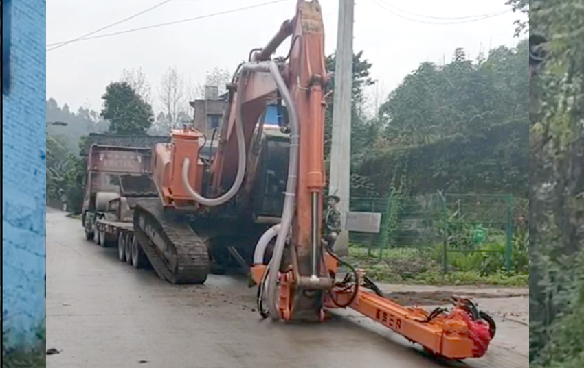 2、前后左右自由伸展,當(dāng)挖掘機(jī)在工地不平坦的情況下, 挖機(jī)手可根據(jù)位置不同調(diào)整鉆桿角度,保持90°垂直鉆孔。