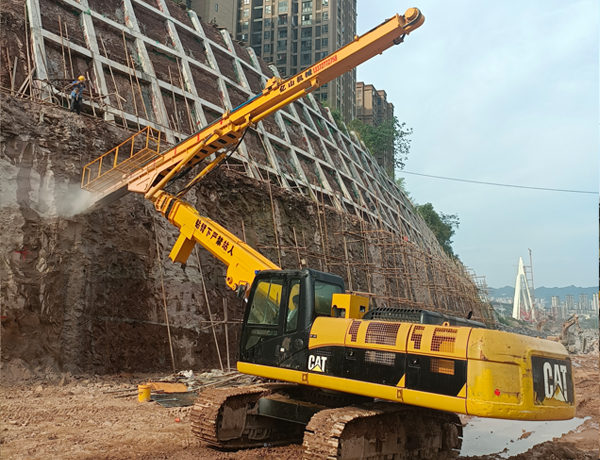 3、作業(yè)半徑擴(kuò)大化 。因?yàn)橥诰驒C(jī)小臂不拆,它的作業(yè)半徑可以延長作業(yè)半徑2-3米,且仰角打孔、水平打孔、豎直打孔都可以實(shí)現(xiàn)。