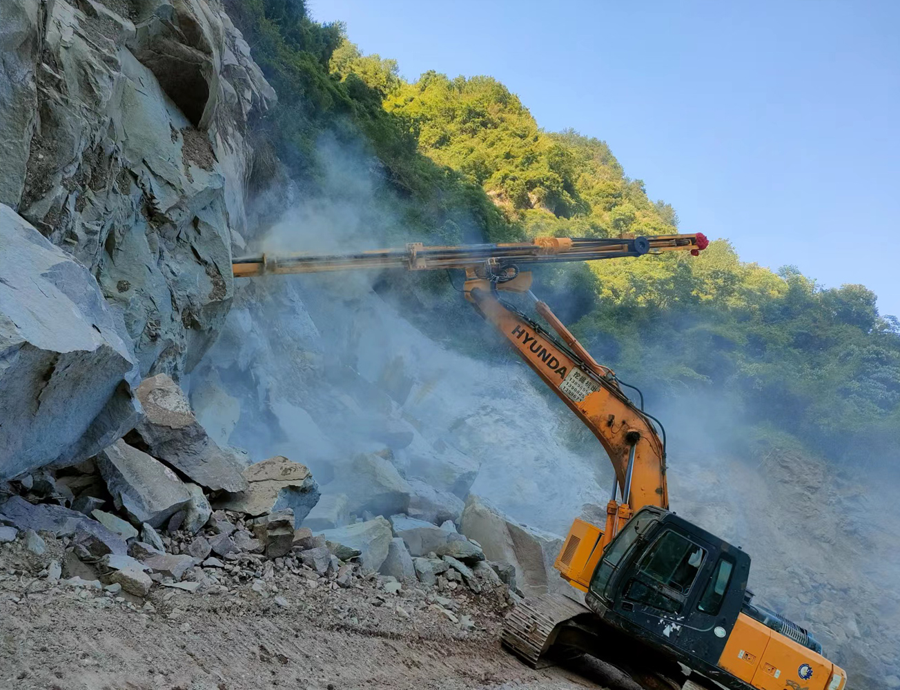 挖機改鉆機為您開啟了新的施工方法。挖斗+破碎錘+切削鉆機+鑿巖鉆機+潛孔鉆機,一機多用,為您降低成本。無論您是從事采石業(yè)、采礦業(yè)、土建工程、鋼鐵工業(yè)、隧道工程或路橋工程,在許多傳統(tǒng)方法失效或成本高的地方,您都可以借助這靈活、耐用、噪音小且震動低的特種機器。
