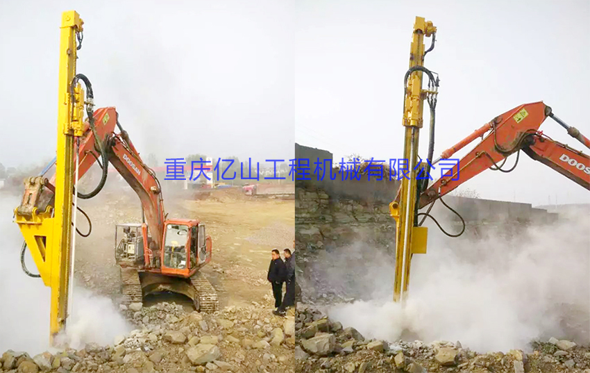 億山ES300挖改全液壓鑿巖機(jī),廣泛適用于花崗巖、石灰石、大理石、火山石、青石、玄武巖等硬度較高的堅(jiān)巖石的各種爆破前鉆孔作業(yè)(硬度F大于6級);可以借助挖機(jī)的操作靈活性用于錨桿鉆孔;也遠(yuǎn)遠(yuǎn)低于一體式鑿巖鉆機(jī)的采購價格。具操作簡易,設(shè)計人性化,感觀直接,實(shí)現(xiàn)挖掘機(jī)一機(jī)多用等特性。